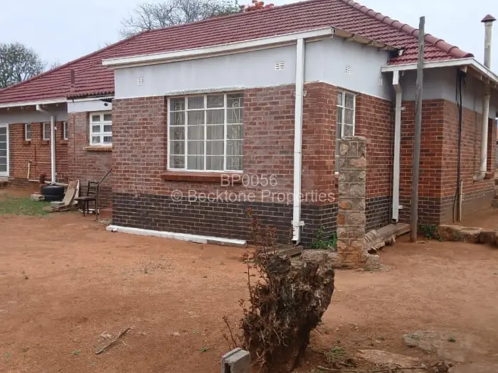 Discover this inviting Hillside property in Bulawayo, offering a tranquil escape on a generous 3900sqm lot. The main house features a classic architectural design with a pitched red-tile roof and warm reddish-brown brick exterior. Enjoy the natural light streaming through the large, multi-paned white-framed windows, enhancing its charm.